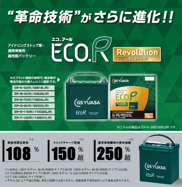 GSユアサ 自動車用 バッテリー ECO.R Revolution ER-K-50R/50B19R-EA-N エコ.アール レボリューション アイドリングストップ車 充電制御車 通常車 長寿命 ジーエスユアサ カーバッテリー GS YUASA