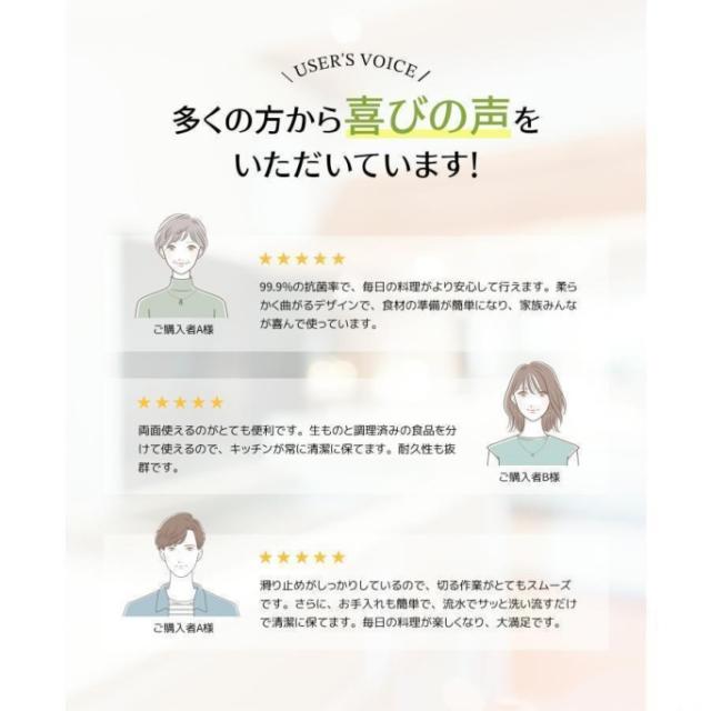まな板の両面に滑り止めを装備。不安定な動きを防ぎ、安全で快適な調理体験を提供。