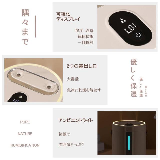 2026最新モデル 加湿器 大容量 2.5L 卓上 超音波式 卓上加湿器 かしつき ライト おしゃれ ダブル噴霧 ミスト超静音 部屋 寝室 乾燥対策 USB お手入れ簡単