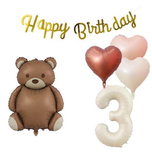 セット内容 くまちゃん 熊 バルーン*1 ハードバルーンx3 (キャラメル、チョコレート、クリームカラー各1枚) happy birthday キャラクターガーランドx1 数字バルーン*2