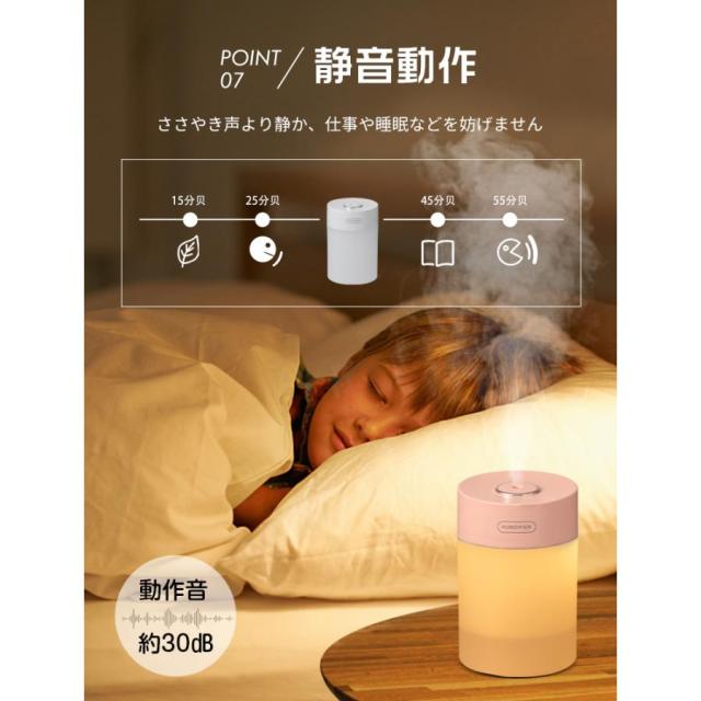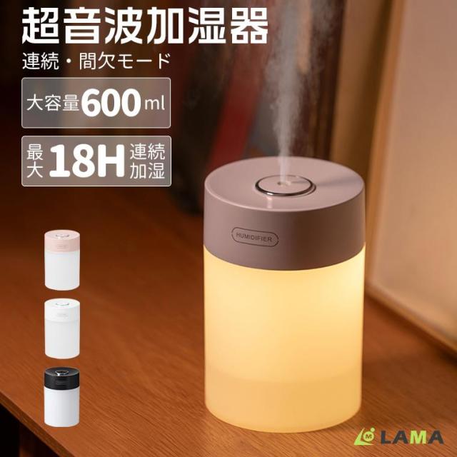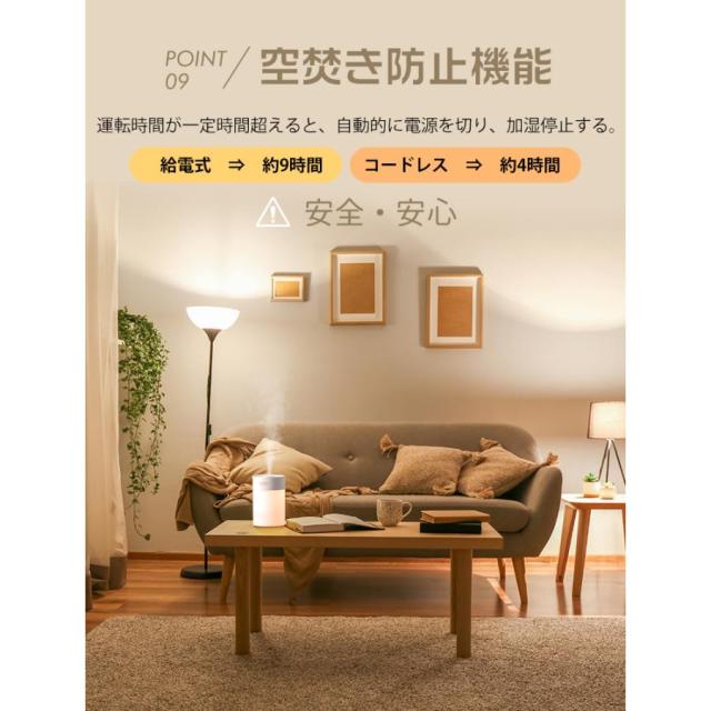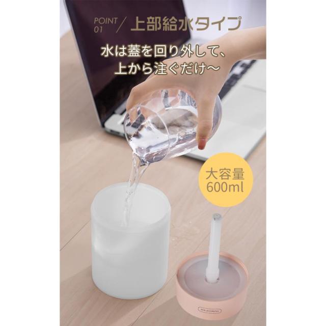 加湿器 加湿機 超音波式 コードレス 静音 卓上 小型 卓上加湿器 600ml ミニ 上部給水 空焚き防止 オフィス 車 充電式 LEDライト ミニ加湿器