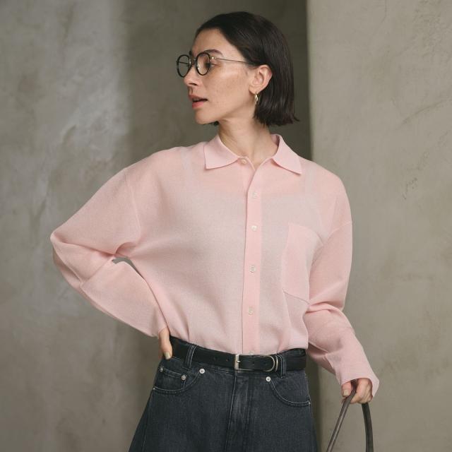 清涼感のあるニットでお作りしたシャツ型カーディガン。