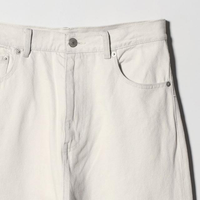 ブラックのデニムを極限までブリーチしたオフホワイトと、染色後にストーンバイオウォッシュでこなれ感をプラスしたベージュ、ブリーチ後にベージュトッピングを施したインディゴの3色をご用意しました。