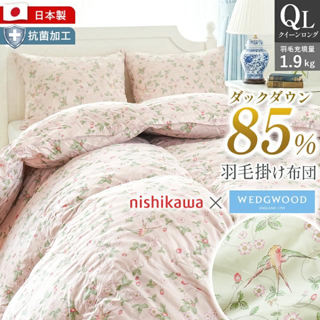 西川 ウェッジウッド 羽毛布団 クイーンロング 210×210cm QL 日本製 国産 ダックダウン85% 充填量1.9kg 掛け布団 秋 冬 寝具 掛け布団 本掛け布団 ふとん 掛布団 羽毛ふとん ブランド WEDGWOOD あたたかい 暖か 立体キルト 抗菌加工