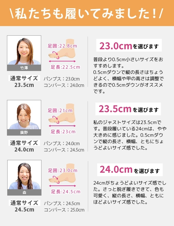 取り扱いサイズ:22.5cm 23cm 23.5cm 24cm 24.5cm 25cm