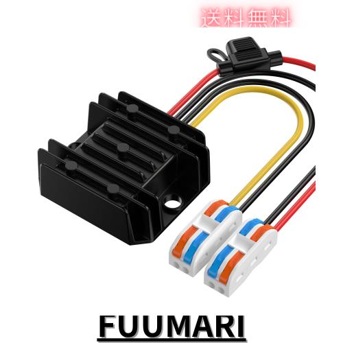 12Vから5Vコンバータ10A 50W、24Vから5Vコンバータ、ヒューズ防水と結線端子付き、降圧コンバータ 12v 5v 変換、自動車電子トラック車両