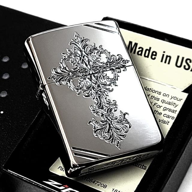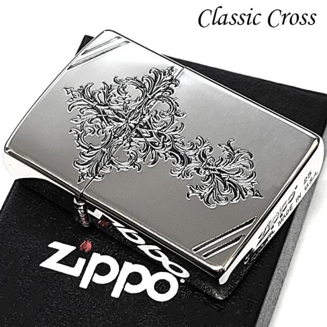 ZIPPO ライター クラシッククロス ジッポ かっこいい Classic Cross ダイアゴナル 彫刻 ゴシック 十字架 美しい ニッケル燻し メンズ 銀 ギフト プレゼント おしゃれ