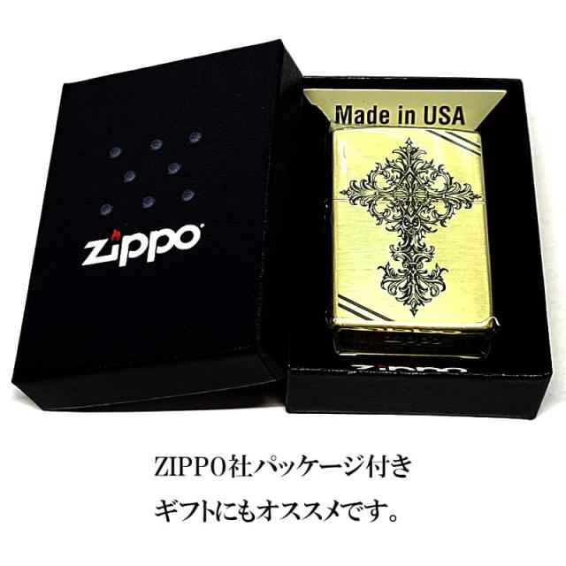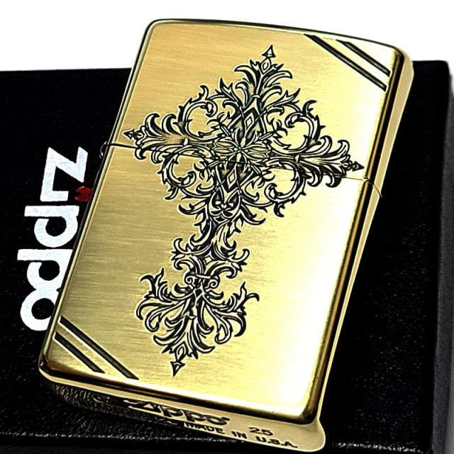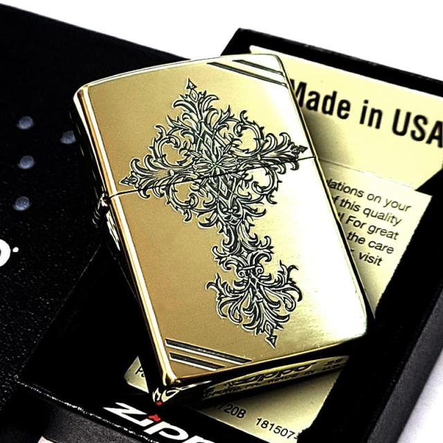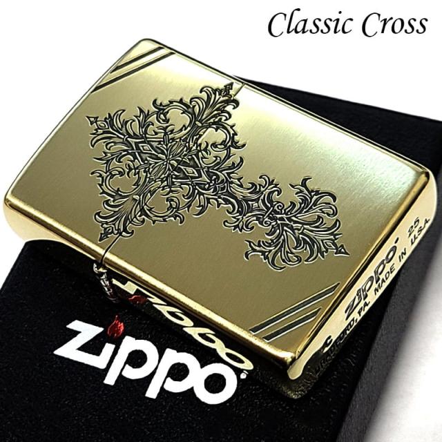 ZIPPO ライター 十字架 ゴシック ジッポ かっこいい クラシッククロス ブラス燻し Classic Cross ダイアゴナル 彫刻 アンティークゴールド 美しい メンズ 金 プレゼント おしゃれ ギフト