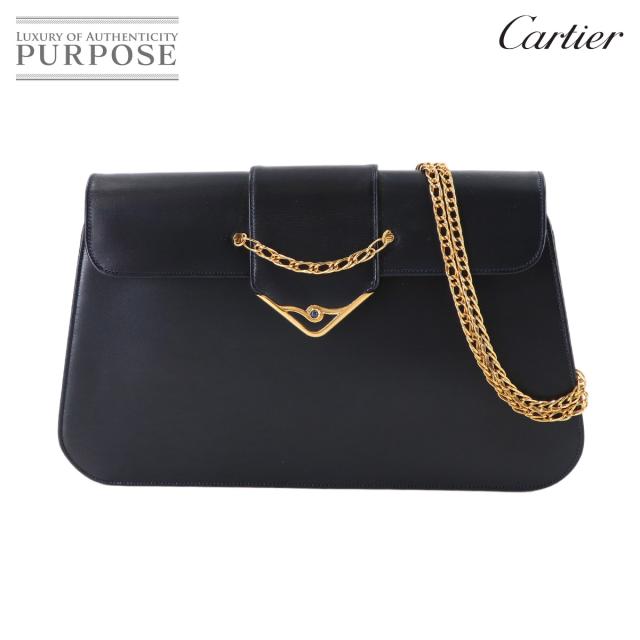 新品同様 カルティエ バッグ サファイアライン チェーン ショルダー バッグ レザー ネイビー レディース 90313130 【中古】ブランド