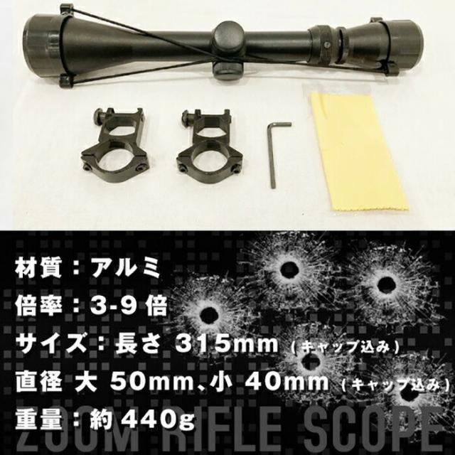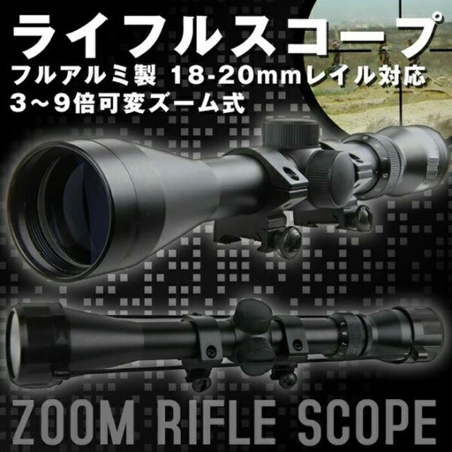 ライフルスコープ フル アルミ 3-9倍 可変 ズーム サバゲー 電動ガン ハンター スナイパー 20mm レール 対応 狩猟 バードウォッチング 運動会 ライブ スコープ ライブ フェス