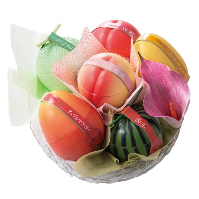 | 内容量 | 果実ピュアゼリー(白桃、白鳳、マスクメロン、イエローマンゴー、アップルマンゴー、西瓜×各1)、カラーオーナメント×1 |