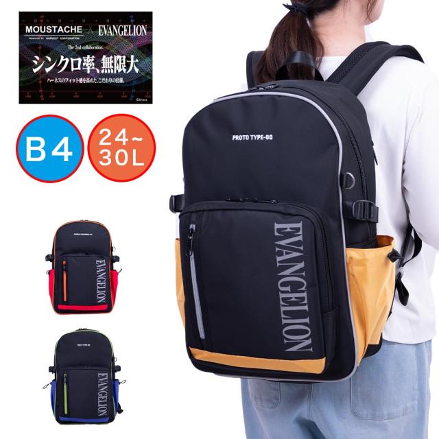 MOUSTACHE ムスタッシュ × エヴァンゲリオン コラボ ラウンドリュック リュックサック デイパック マチ拡張 24-30L A4 B4 メンズ レディース 通勤 通学 通学バッグ 中学生 高校生 大学生 大きめ 大容量 MEV4008