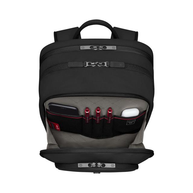 究極のビジネスパートナーとしてデザインされたデラックス バックパックは、電子デバイス、必需品、頻繁に出し入れするアイテム用の3つのコンパートメントを装備。