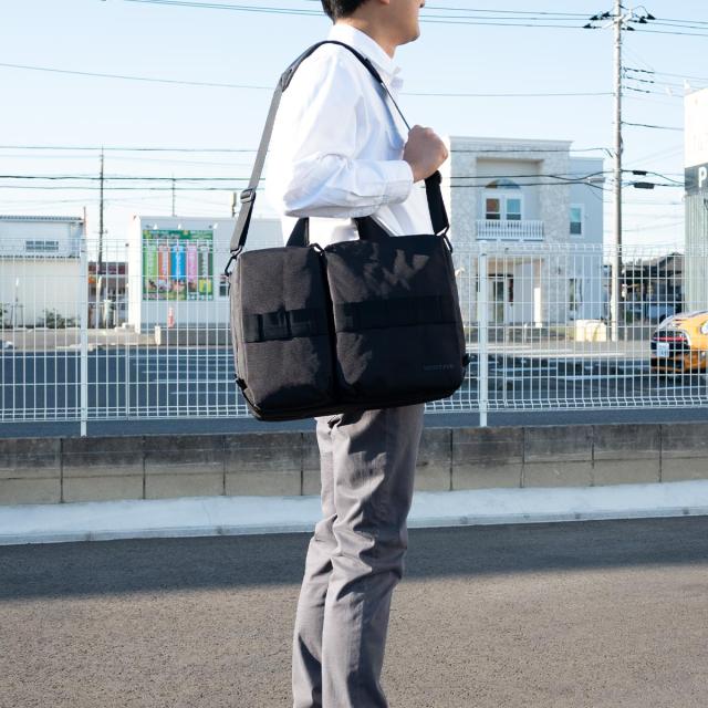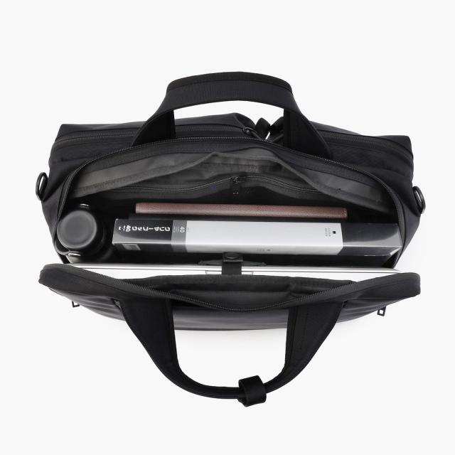 無駄を省いたデザインとオールブラックのカラーリングがソリッドなブリーフケース。