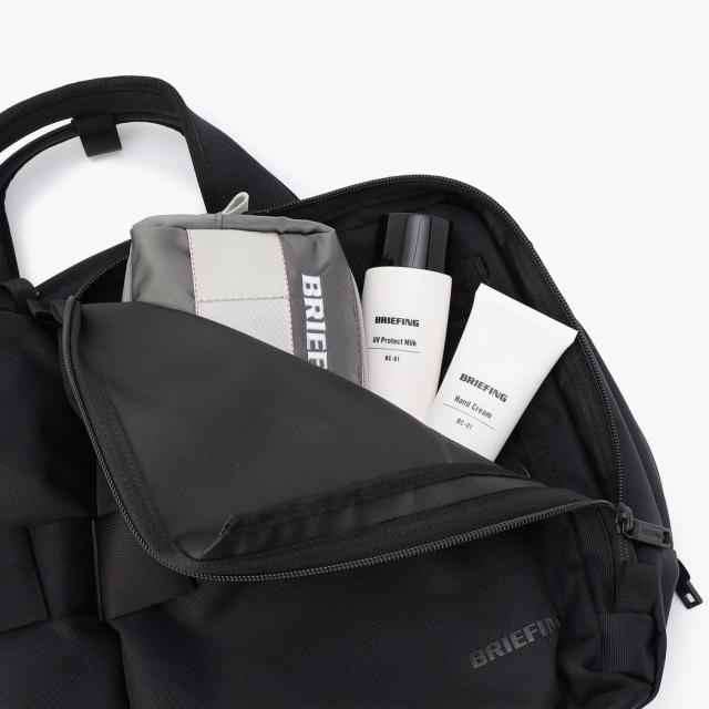 フロントにはマチを設けたポケットを配し、見た目に反した抜群の収納力に。