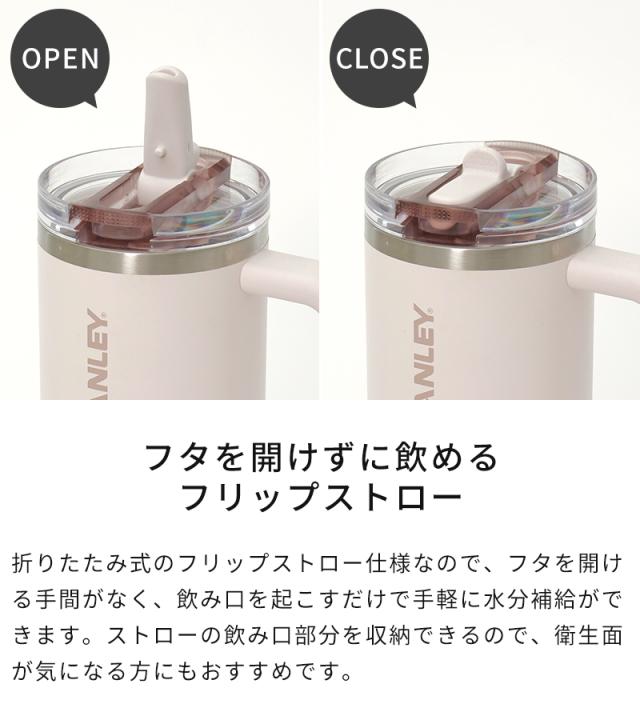 優れた保冷力と耐久性で人気を誇るSTANLEYの大人気シリーズのクエンチャーにストロー付きの完全密閉タイプ「プロツアー」が登場しました。折りたたみ式のフリップストローを採用し、ボトルを逆さにしても飲み物が漏れないため、バッグに入れての持ち運びも安心です。ストローの飲み口は収納できるので、より衛生的に使用できます。真空断熱構造で保冷力も抜群◎。たっぷり飲める0.88Lの大容量で、自宅、オフィス、ドライブ、アウトドアなど幅広いシーンで活躍します。
