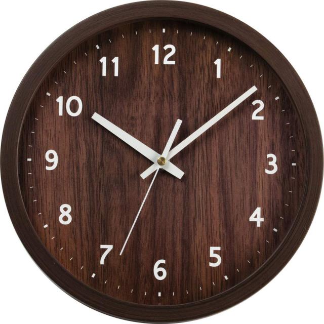 ◆商品名:アイリスプラザ 掛け時計 壁掛け 静音 ブラウン 直径25cm/非電波 文字盤あり チクタク音がしないスイートムーブメント 滑らかに秒針が動