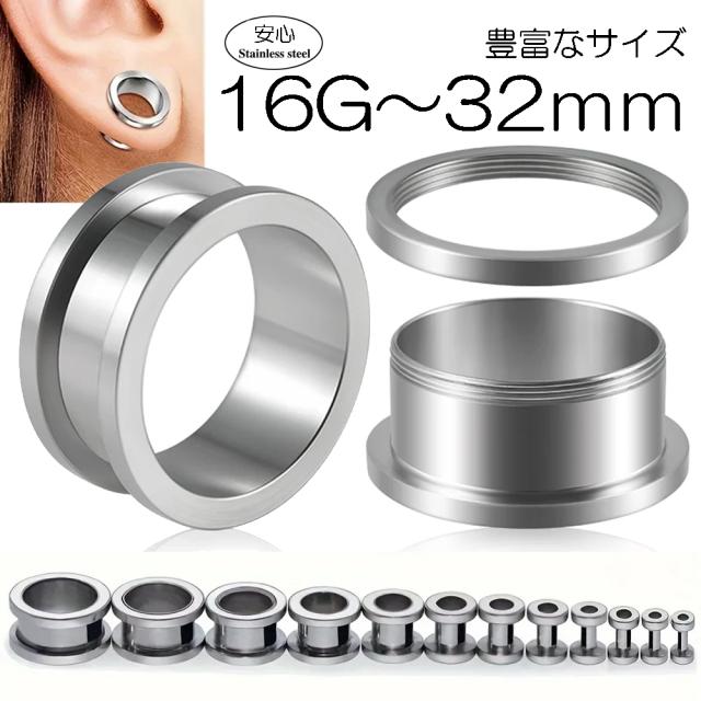 [ 16G 15G 14G 12G 10G 8G 6G 4G 2G 0G 00G 11mm 12mm 14mm 16mm 18mm 19mm 20mm 22mm 24mm 25mm 26mm 28mm 30mm 32mm 34mm 36mm ] ステンレス製 トンネル 1個販売 銀色 シルバー メンズ レディース ホールピアス ネジ ボディピアス 定番 ホールトゥピアスにも 埋め込み