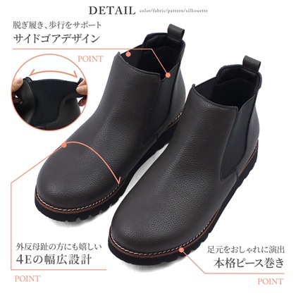 ブーツ ショートブーツ サイドゴア 幅広 4E 外反母趾 本革調 厚ゲージシボPU カジュアルブーツ チェルシーブーツ 防滑 防水 履きやすい 歩きやすい シンプルデザイン 上品
