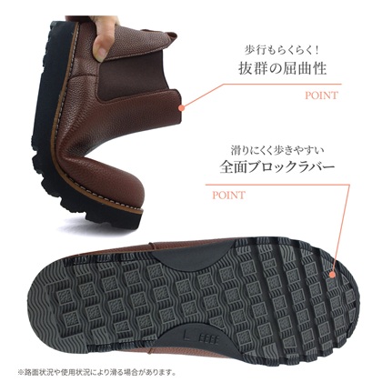 サイドゴアで脱ぎ履きしやすく足にしっかりフィットし