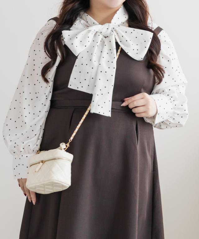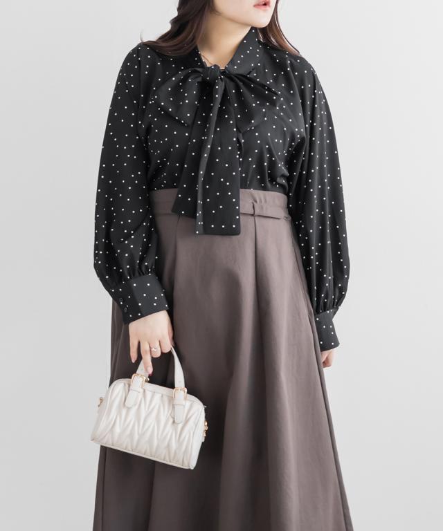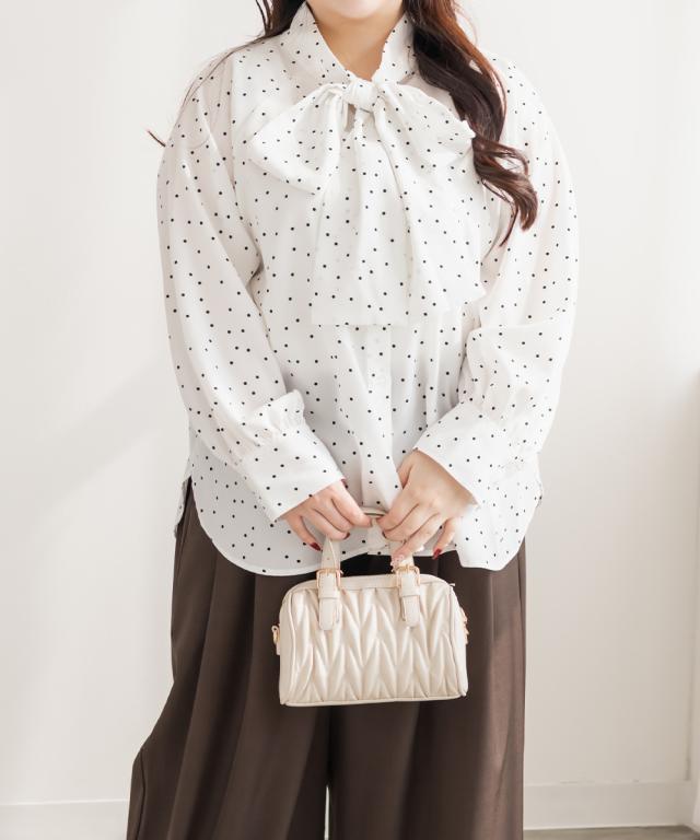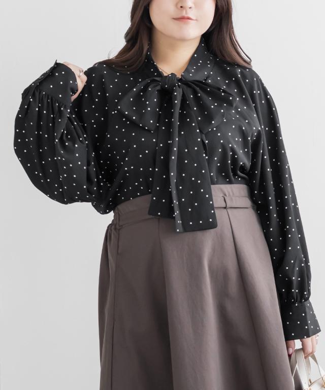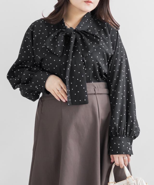 大きいサイズ/レディース/3L/4L/5L/ドットボウタイブラウス