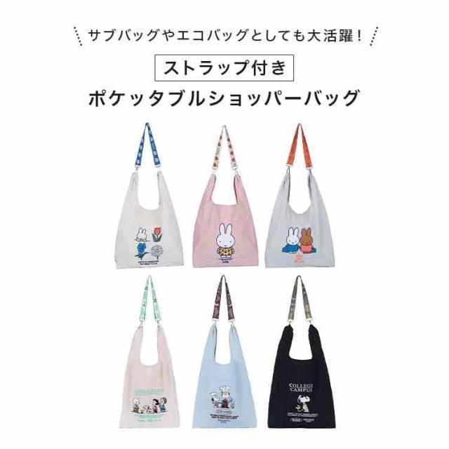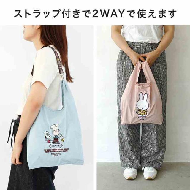 エコバッグ ミッフィー スヌーピー 折りたたみ 買い物バッグ miffy SNOOPY ショルダーストラップ 2WAY コンパクト 軽量 マチ付き サブバッグ ショルダーバッグ キャラクター PEANUTS かわいい おしゃれ しっかり 丈夫 レジ袋 買い物 ベージュ ピンク グレー ブルー ブラック