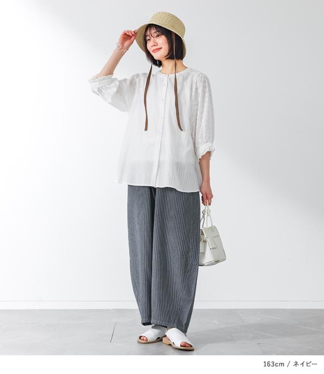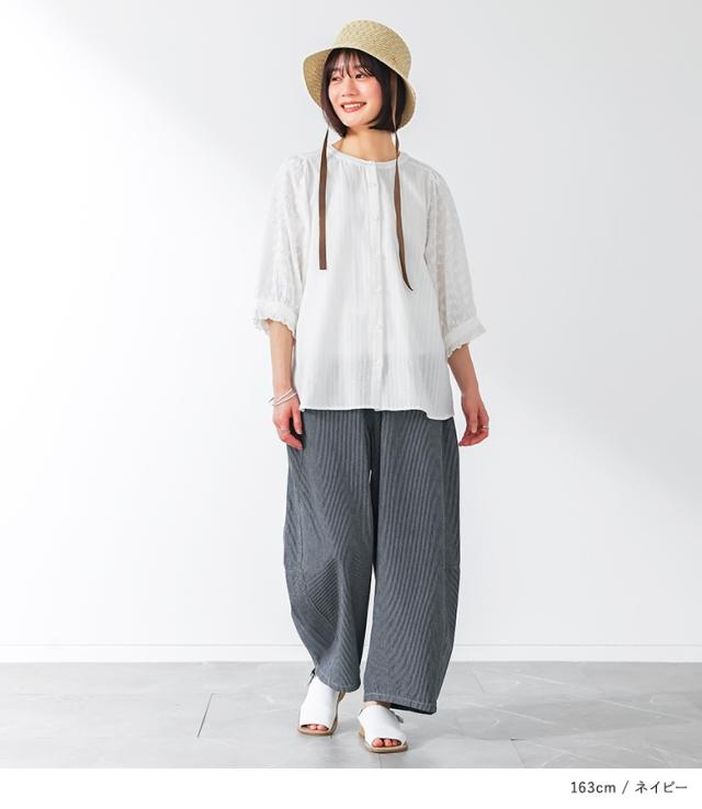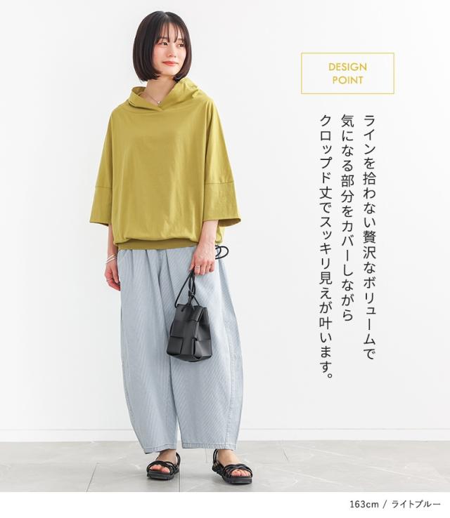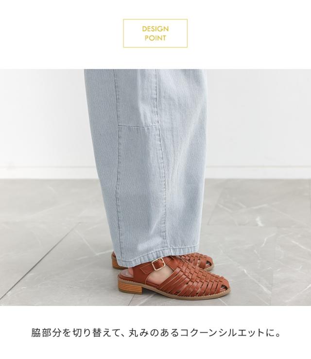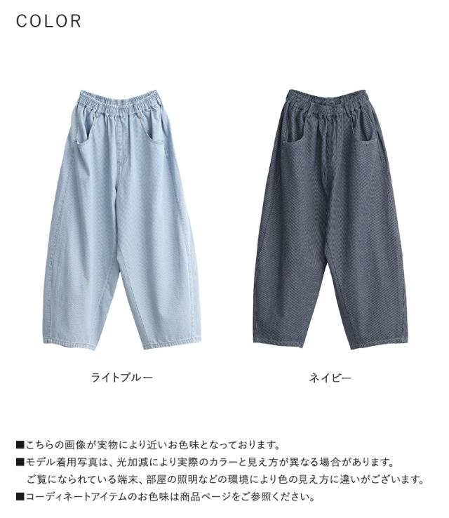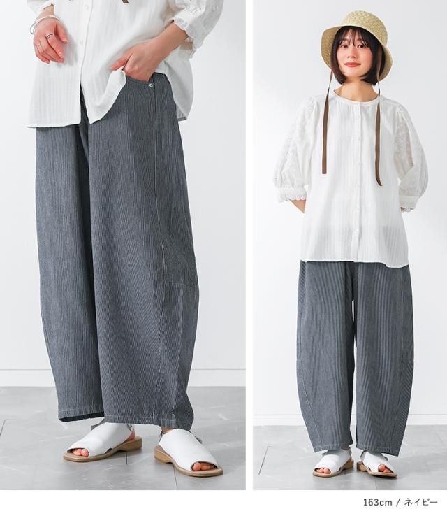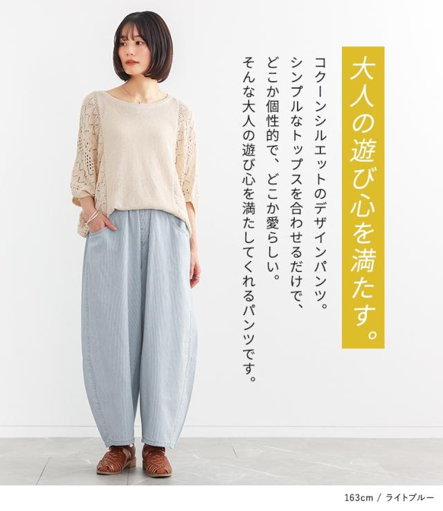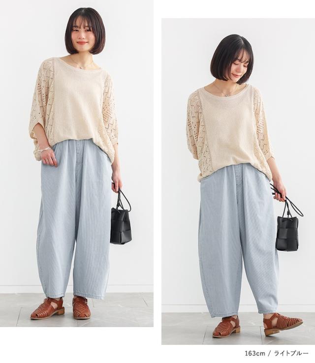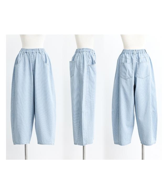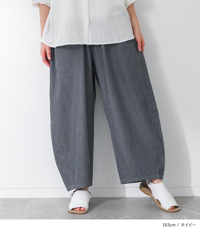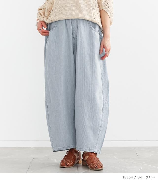 <春新作>『ヒッコリーコクーンパンツ』【メール便不可】【20】[デニム パンツ ロング レディース ボトムス ヒッコリーパンツ コクーンパンツ ジーンズ クロップド丈 綿100% 薄手 ゆったり 春 夏]