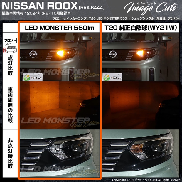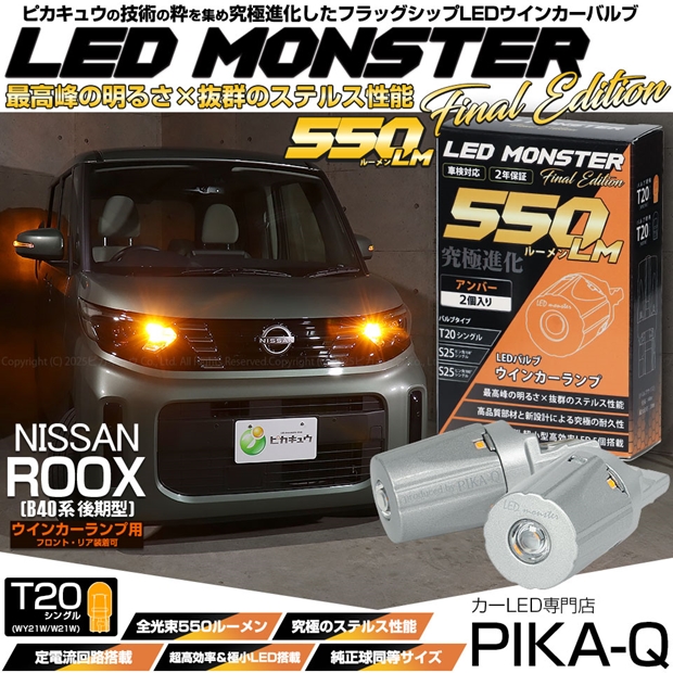 ピカキュウ,LED専門店ピカキュウ,LED,ウインカー球,オレンジ球,ウインカーラン,ターンシグナルランプ,ハザードランプ,LED MONSTER,LEDモンスター,t20,T20シングル,ウェッジ球,wy21w,w21w,WY21W,W21W,オレンジ,アンバー,橙,ニッサン,日産,NISSAN,ルークス,ROOX,B44A,B45A,B47A,B48A