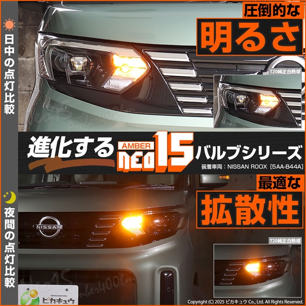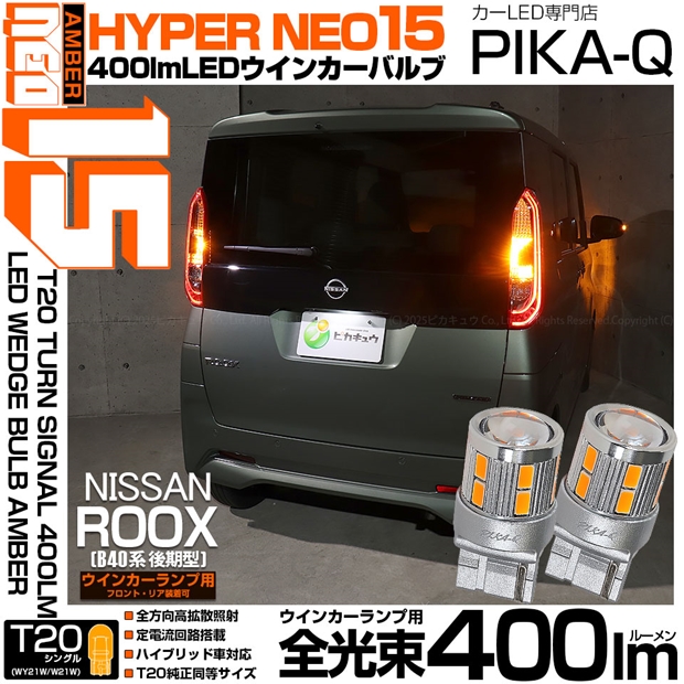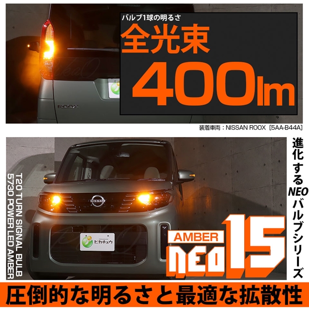 ピカキュウ,LED専門店,LEDバルブ,LED,SMD,T20S,T20シングル,ターンシグナルランプ,ウインカーランプ,DC12V車,NEO15,アンバー,全光束400lm,定電流回路搭載,ハイブリッド車対応,ニッサン,日産,NISSAN,ルークス,ROOX,B44A,B45A,B47A,B48A