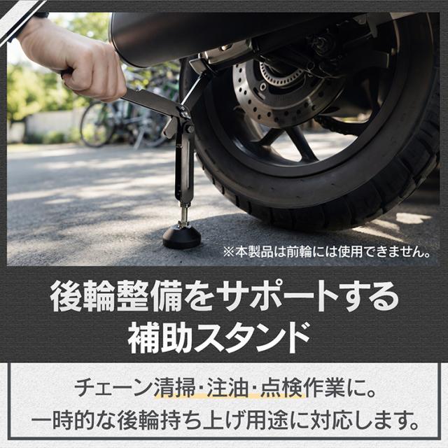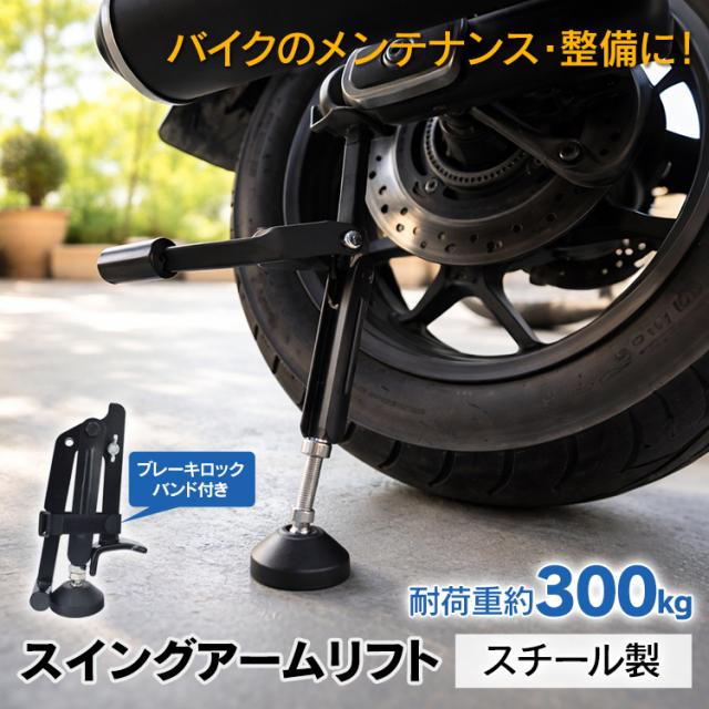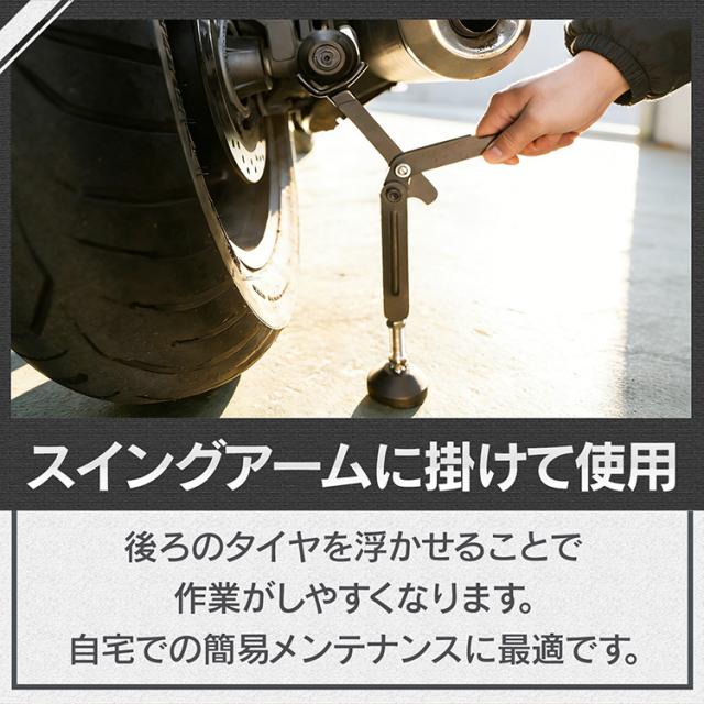 バイクリフター スイングアームリフト 後輪専用 バイクスタンド メンテナンス 整備用 補助スタンド チェーン清掃 リアタイヤ リフトアップ 折りたたみ式 高さ調整可能 耐荷重約300kg スチール製 ee463