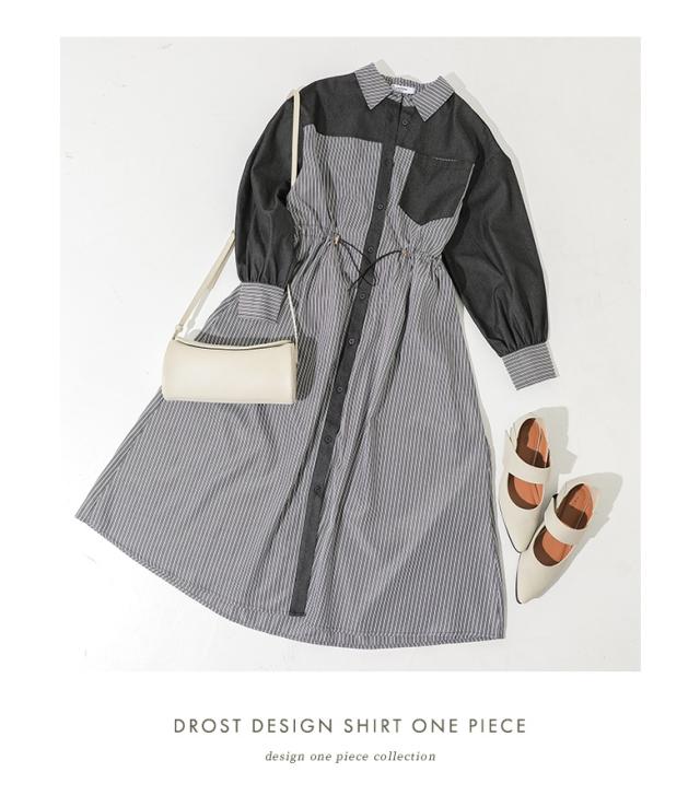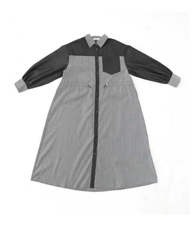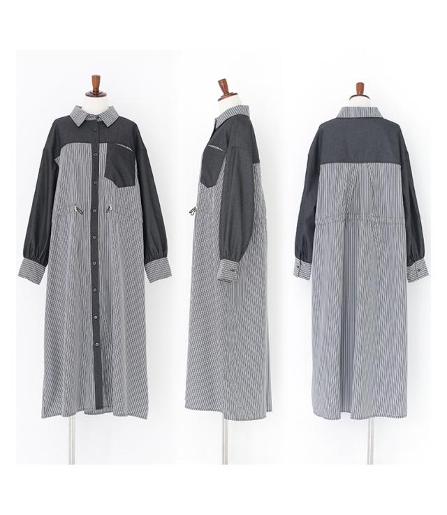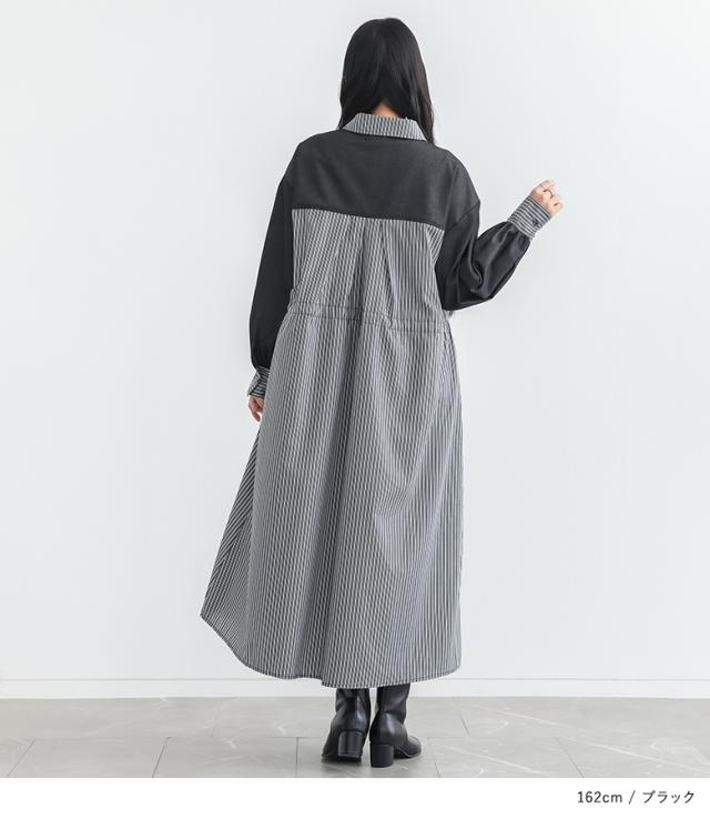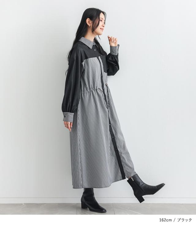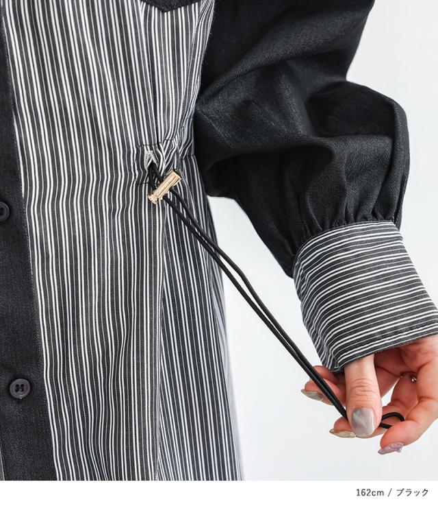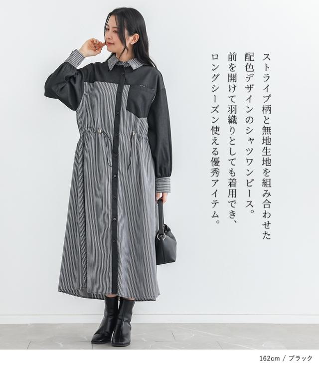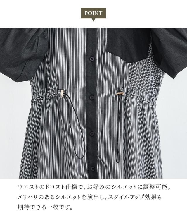<春新作>『ストライプドロストシャツワンピース』【メール便不可】【20】[シャツワンピース レディース 長袖ワンピース ロングシャツ ストライプ柄 異素材 羽織り 春 秋 冬 オシャレウォーカー]