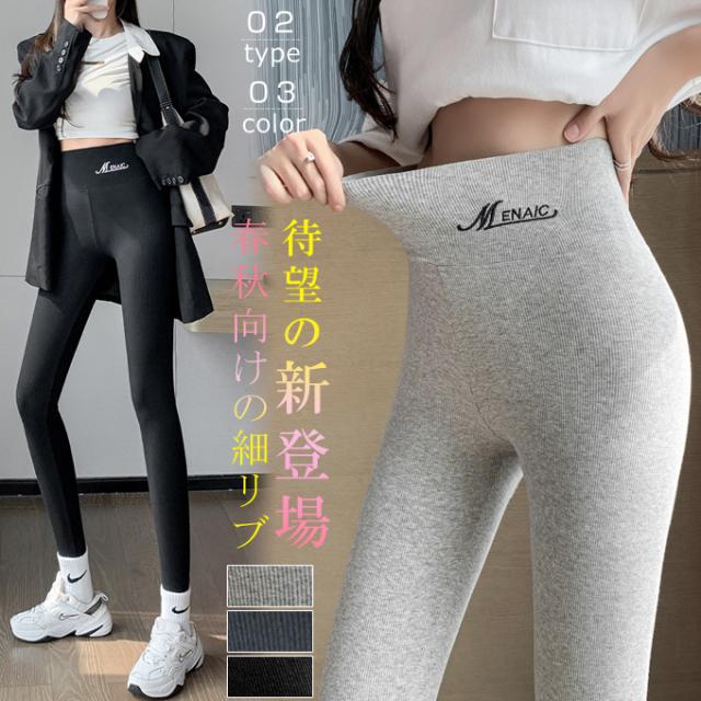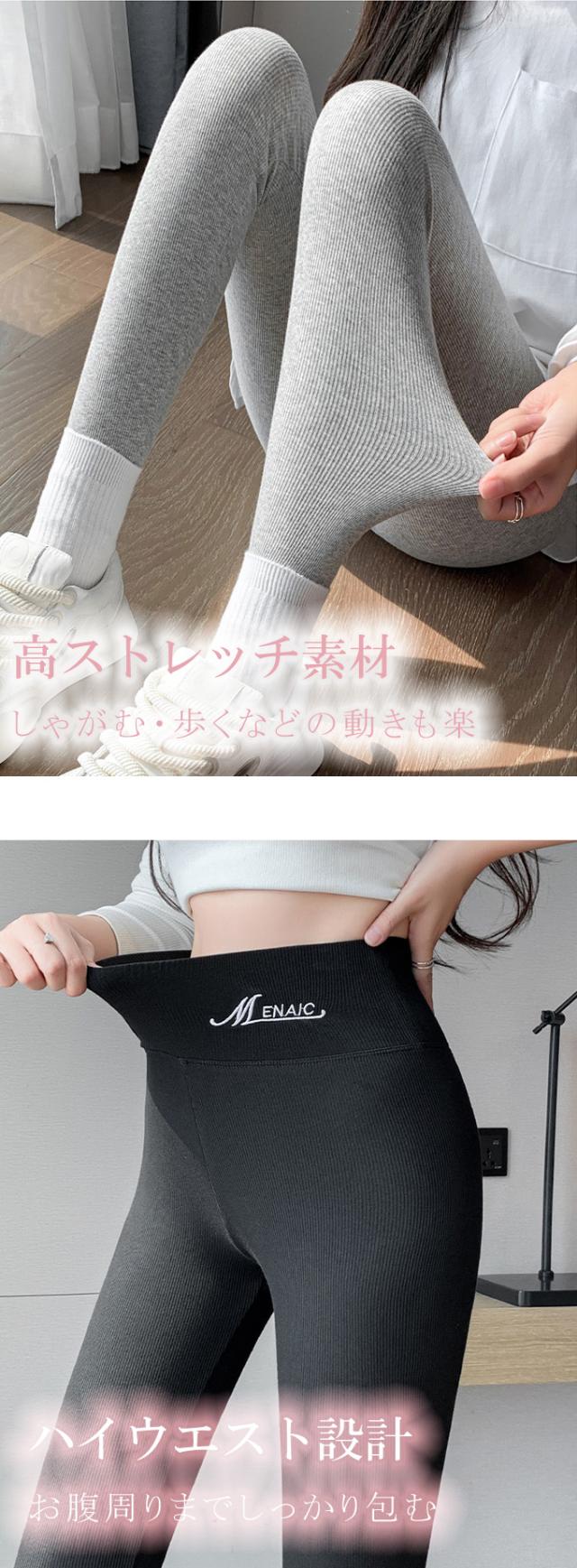 50%OFFク−ポンを配布中、1090円、春秋細リブ生地追加!脚長効果 t高ストレッチ 縦ラインリブ フィット 動きやすい あったか裏起毛レギンスパンツ レディース スパッツ