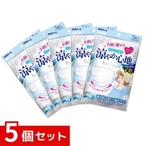 ビースタイル 涼やか心地 プリーツ マスク 5枚入 ホワイト 【ムレにくい 息がラク 小顔効果】 x5個セット 4902407582423 #