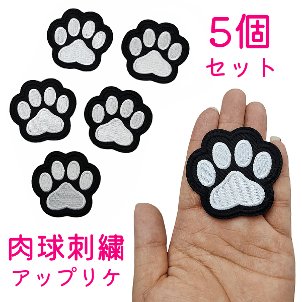 5枚セット アップリケ 肉球 ワッペン アイロン パッチ 貼り付け 縫い付け 人気 手芸 足跡 フットプリント かわいい リメイク アイロン接着 イヌ いぬ 犬 ネコ 猫 動物 アニマル 穴隠し アレンジ 目印 ワンポイント 幼稚園 保育園 可愛い