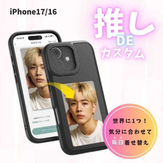 iPhone17 iPhone16 iPhone 背面ディスプレイ付き スクリーン付き 耐衝撃ケース 推し活 写真 着せ替え かわいい スマホケース アイフォン17 アイフォン16 画像 カスタム ペット 子供 家族 韓国 推し アイドル 電子ペーパー画面 ハイブリッド 携帯 カバー アイホン