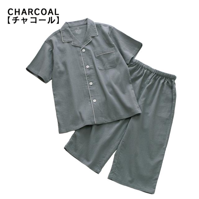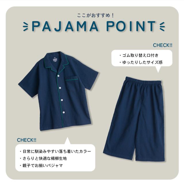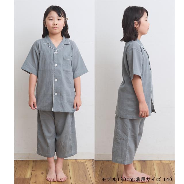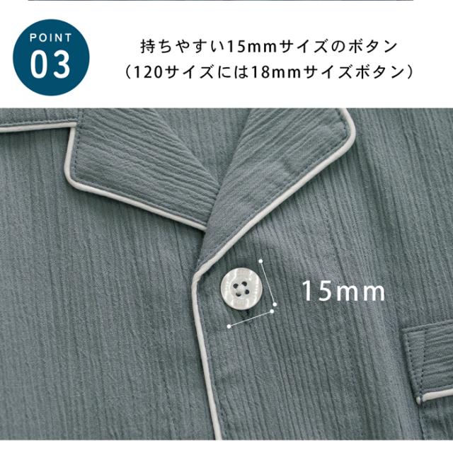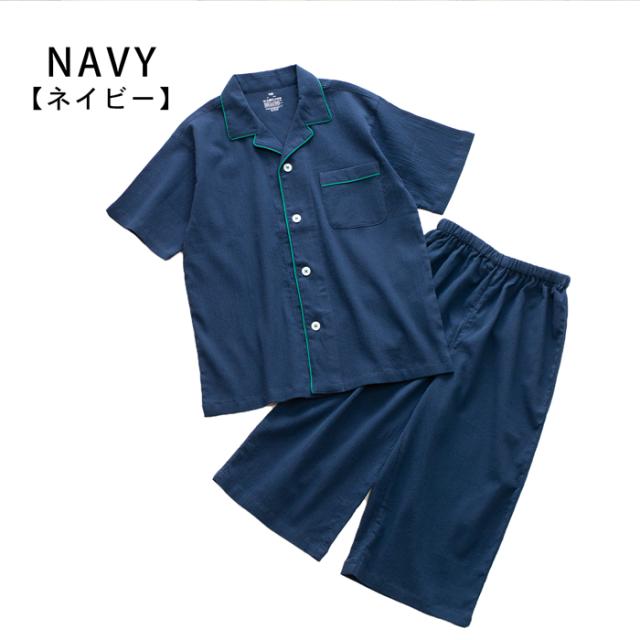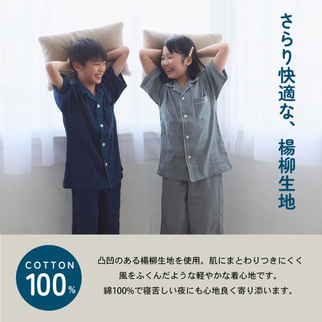 パジャマ キッズ 男の子 女の子 綿100% 楊柳 春 夏 涼しい さらさら 薄手 半袖 ハーフパンツ 前開き ボタン シャツ 無地 チャコール ネイビー 120 130 140 150 160 家族 おそろい リンク コーデ ギフト プレゼント メール便なら 送料無料 92252