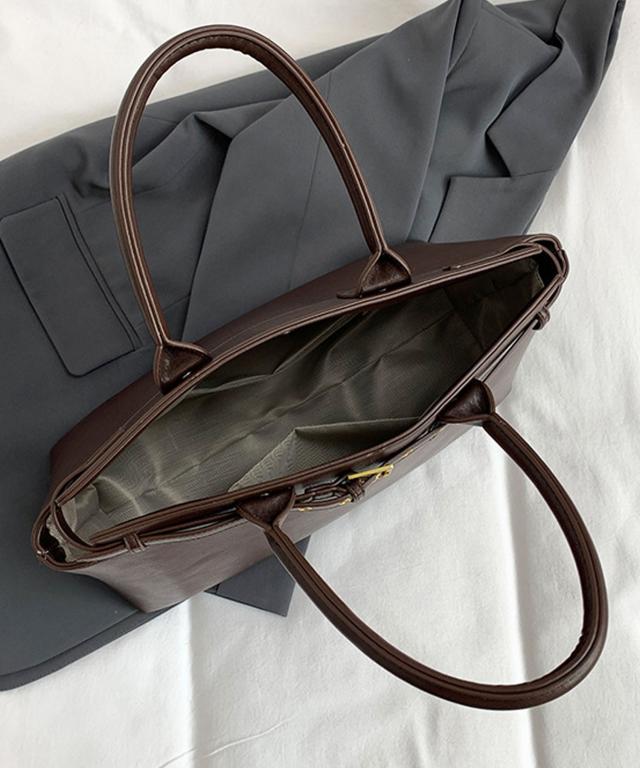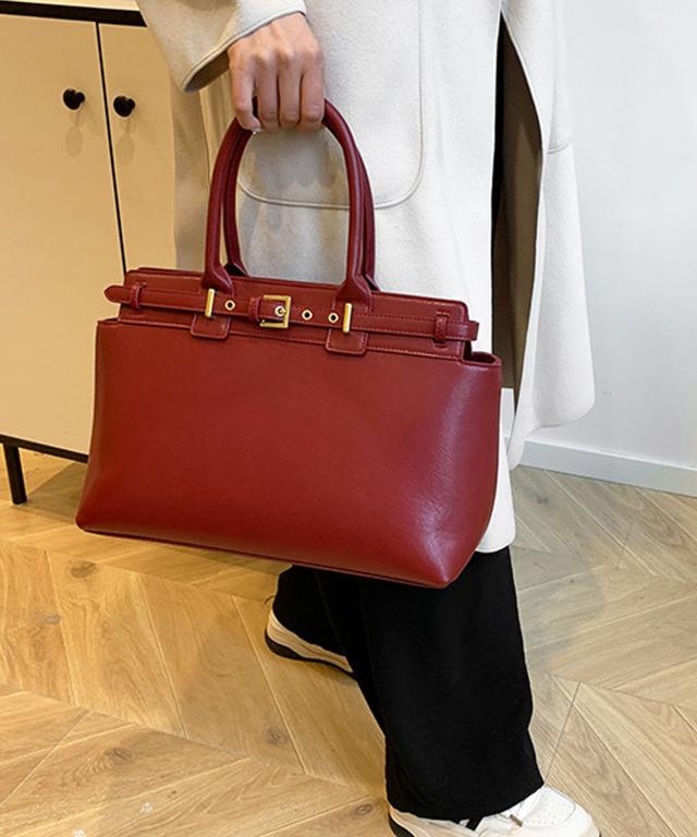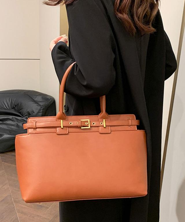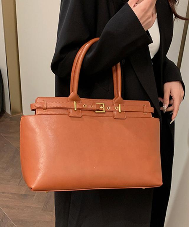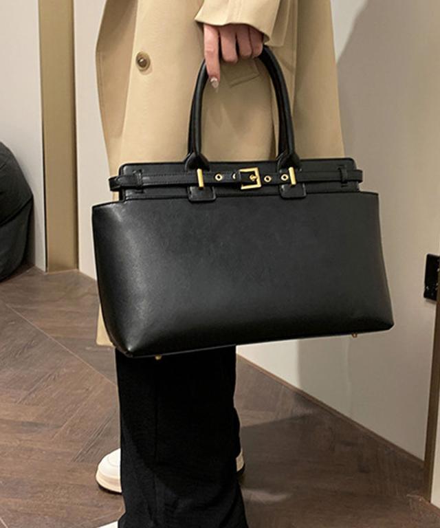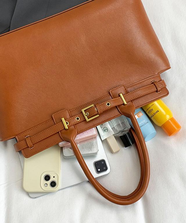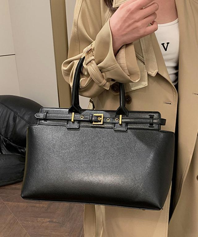 PUレザータッチベルトデザインハンドバッグ/ビジネスバッグ/通勤バッグ/トートバッグ。