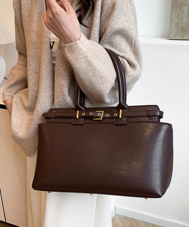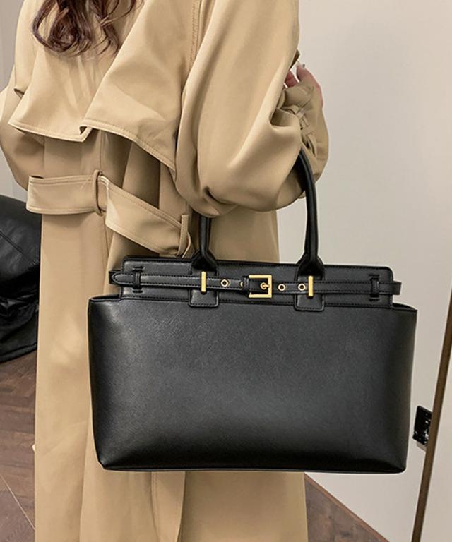【おしゃれなベルテッドワイドバッグ/トートバッグ/ハンドバッグ/通勤バッグ】