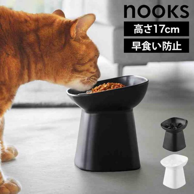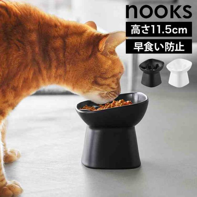 山崎実業 早食い防止陶器ペットフードボウル 斜め H11.5 ヌークス 10557 10558 ホワイト ブラック nooks 公式 犬 猫 エサ皿 餌入れ 突起付き 陶器 高め 11.5cm レンジ対応 食洗機対応 ペット 食器 丸飲み 防止 エサ入れ シンプル おしゃれ 餌皿 フードボウル 食べやすい 角度