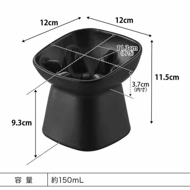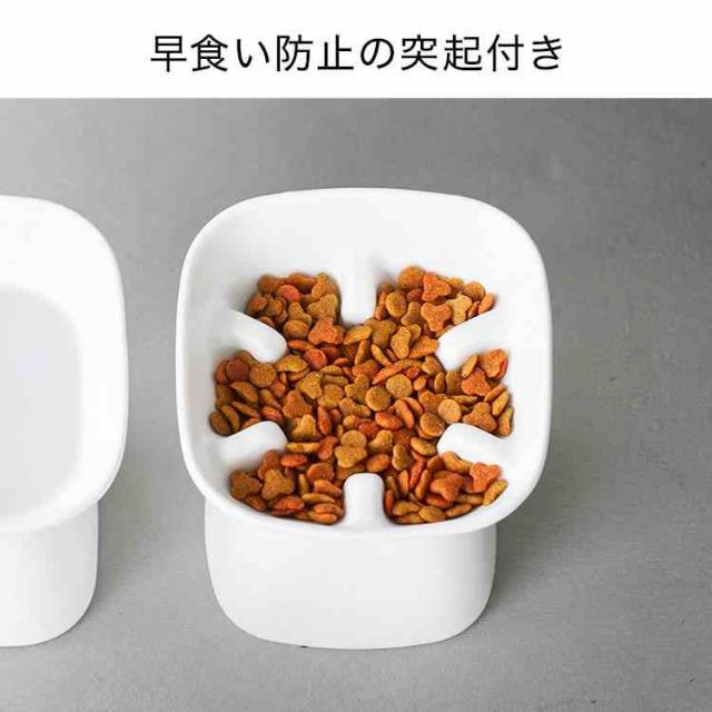 傾斜がついた高さ11.5cmの食べやすいフードボウルです。突起付き形状で早食いしにくく、少しずつ噛んで食べやすい構造です。愛犬・愛猫に合わせて、食べやすい高さや容量を選べます。食洗機OK。電子レンジOK。