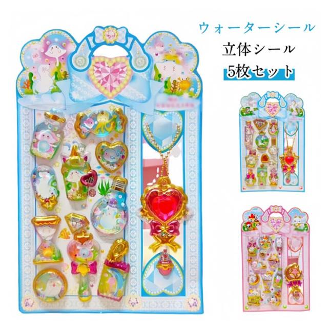 【5枚セット】水入りシール ウォーターシール ぷくぷくシール ぷっくりシール 可愛い ご褒美シール 装飾用 DIY用 3Dシール シール帳 女の子 小学生 立体シール ノート用 手帳 ステッカーデコ 手作り 3Dステッカー シール交換 誕生日 クリスマス 手芸用品 個性的