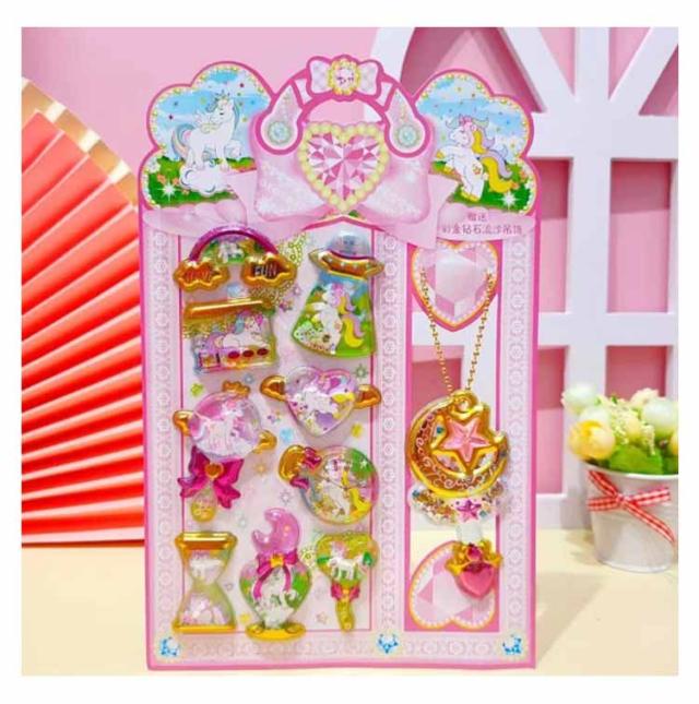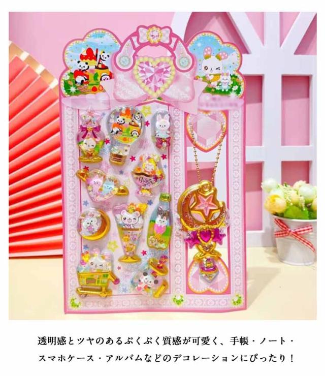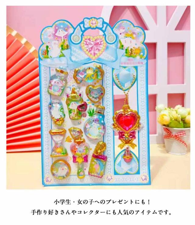 | ぷっくりした立体シールの中に、スパンコールと水を封入したきらきらのウォーターシールです。 適度な粘着力で、様々な物の表面にしっかり貼りつきながらも、はがしてもベタつき残りにくい設計で 透明感とツヤのあるぷくぷく質感が可愛く、手帳・ノート・スマホケース・アルバムなどのデコレーションにぴったり! カラフルで楽しいデザインが揃っており、クリスマスや誕生日ギフトにも最適♪ 小学生・女の子へのプレゼントにも!手作り好きさんやコレクターにも人気のアイテムです。 | |