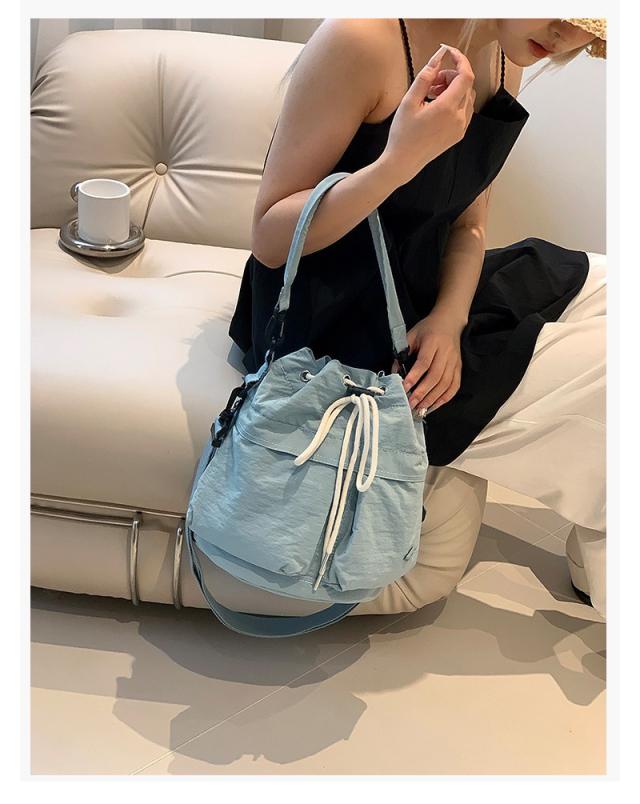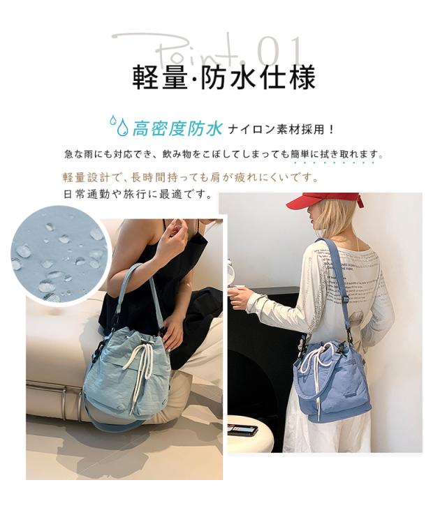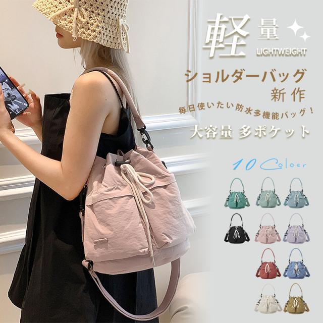 ショルダーバッグ レディース 巾着型 巾着バッグ 斜めがけ ナイロンバッグ 大容量 通勤 通学 旅行 カジュアル