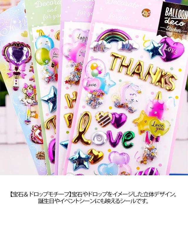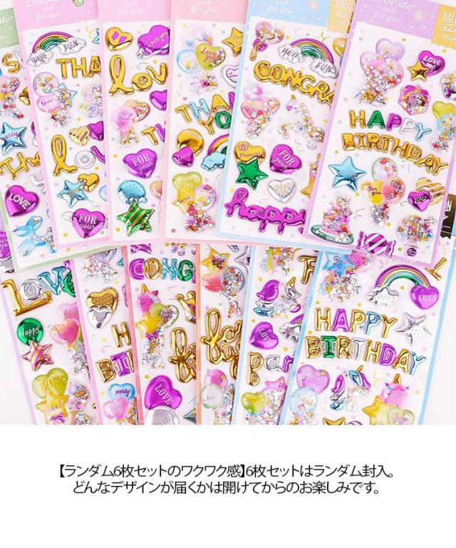 ランダル6枚セット 3Dシール 立体シール 宝石シール ドロップ シャカシャカ つやつや キラキラ ぷくぷくシール ぷっくりシール デコシール かわいい ジュエリー宝石 ぷくぷく 送料無料 女の子 泡ステッカー 交換 シール帳