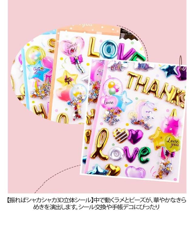| 【振ればシャカシャカ3D立体シール】中で動くラメとビーズが、華やかなきらめきを演出します。シール交換や手帳デコにぴったり♪ 【宝石&ドロップモチーフ】宝石やドロップをイメージした立体デザイン。誕生日やイベントシーンにも映えるシールです。 【キラキラ光沢感がテンションアップ】 ぷっくりボリューミーなカプセルシールにキラキラグリッターが入って光沢感抜群! 【ランダム6枚セットのワクワク感】6枚セットはランダム封入。どんなデザインが届くかは開けてからのお楽しみです。 【誕生日・イベントにおすすめ】カードやラッピングに貼るだけで、特別感をプラス。貼って遊んでも良し、お友達に渡す手紙に貼るだけでかわいい仕上がりになりますよ! | |