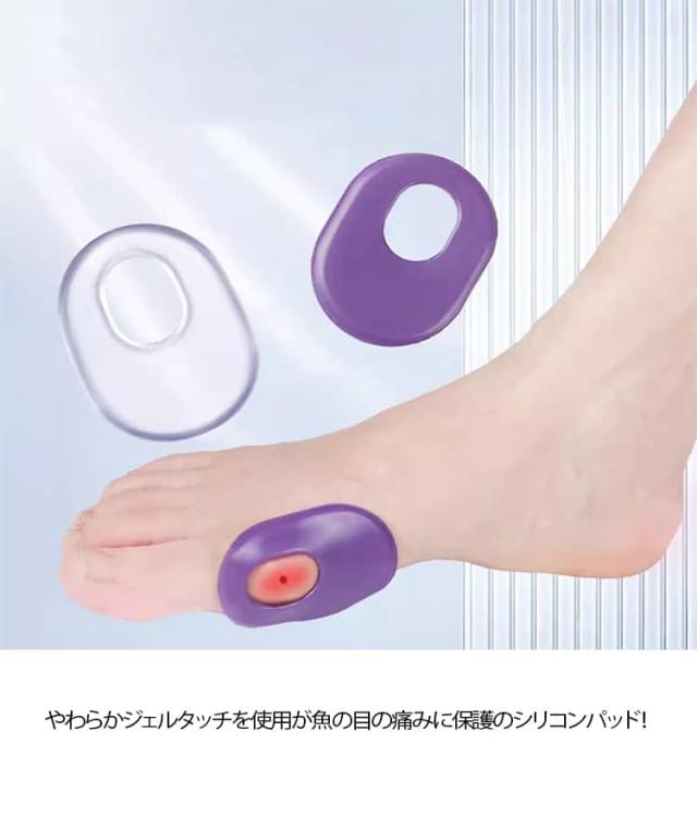 | 5足セット 魚の目 保護パッド やわらかジェルタッチを使用が魚の目の痛みに保護のシリコンパッド! 汚れたら水洗いできるので、繰り返し清潔にお使いいただけます。 長時間ヒールを履き続けることによる足裏の痛みを緩和します。 | |