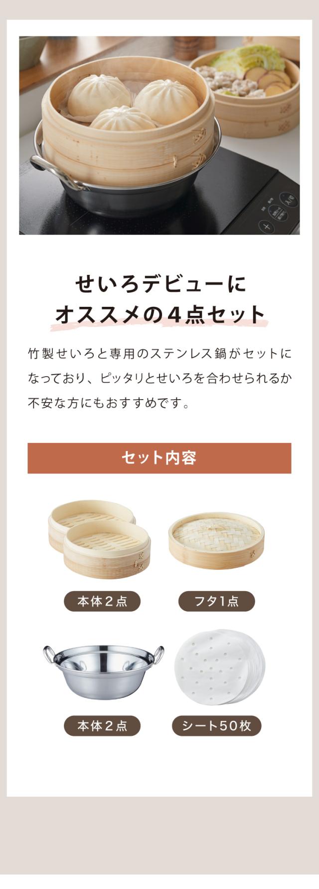炭化竹せいろ 専用鍋付き4点セット/21cm