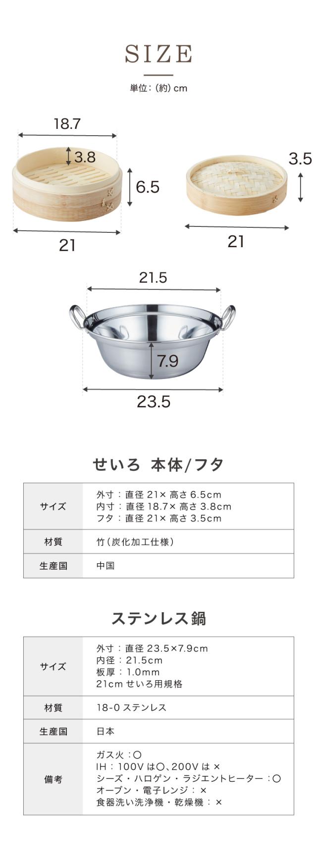 日本製 燕三条 ステンレス鍋 炭化竹せいろ2段 セット 21cm 簡単蒸し料理 ステンレス鍋 蒸し器 せいろ 鍋付き 蒸し 2段 炭化 竹 せいろ セイロ 蒸しかご セット 蒸し野菜 中華 蒸篭【送料無料】