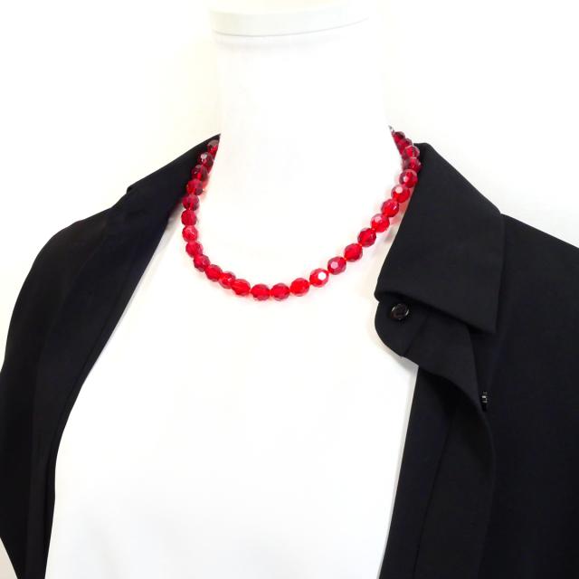 送料無料 ネックレス カットビーズ ルビー色 レッド 直径10mm 40cm 長さ調調整鎖5cm 華やか 鮮やか