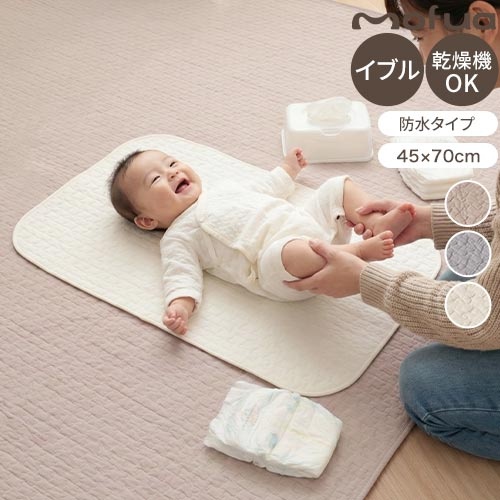 おむつ替えマット 敷きパッド 防水シーツ ベビー 45×70cm イブル mofua モフア 赤ちゃん ベビーシーツ 寝具 洗える 乾燥機対応 ゴムバンド付き キルティング お昼寝布団 新生児 CLOUD柄 雲柄 無地